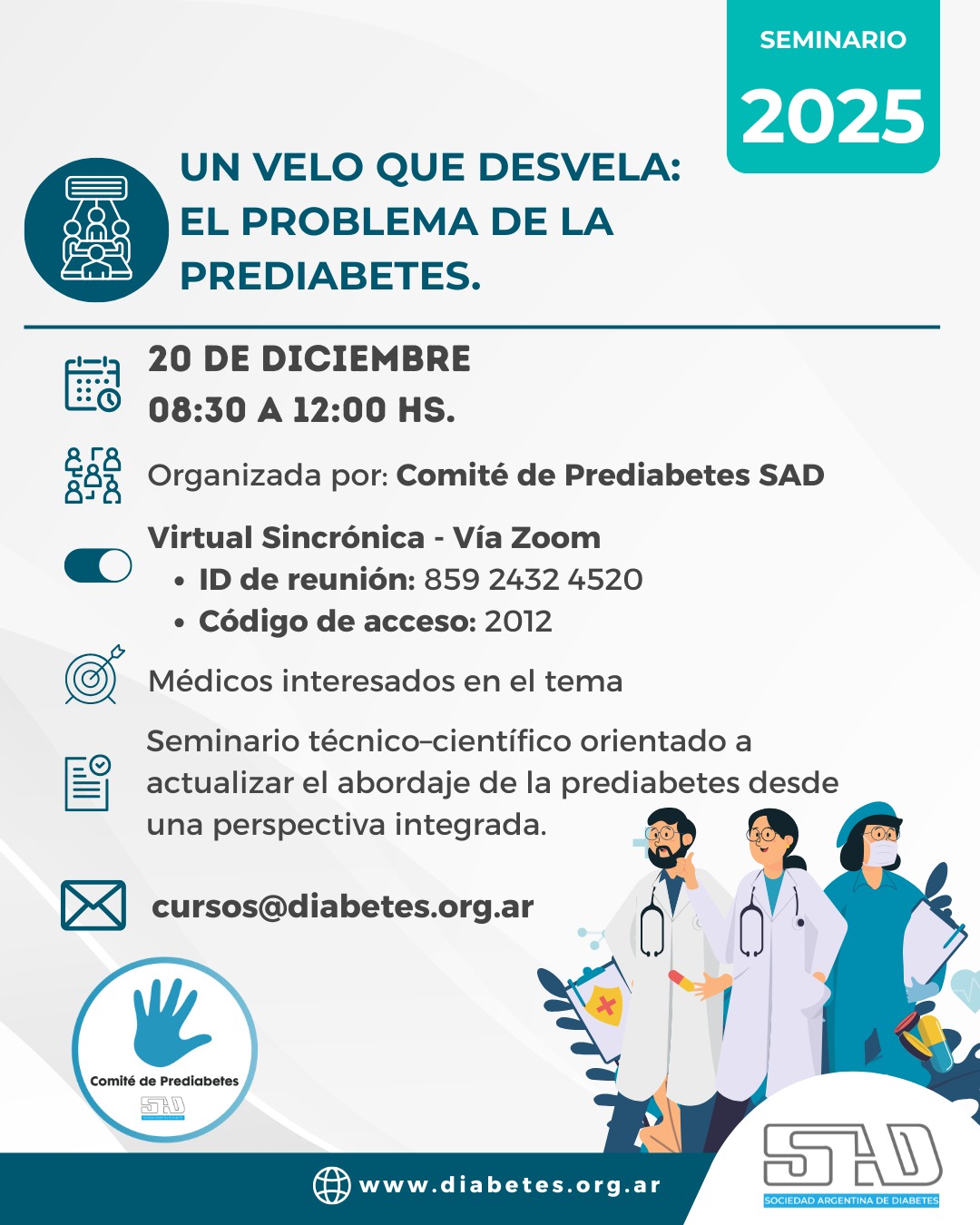 20 diciembre, 2025(1 event) – ⚕️Organiza: Comité de Prediabetes SAD ⛓️💥Link directo: https://us06web.zoom.us/j/85924324520